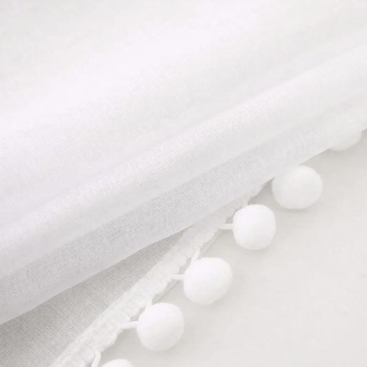 Rideau Tamisant - Pompons Effet Lin Blanc
